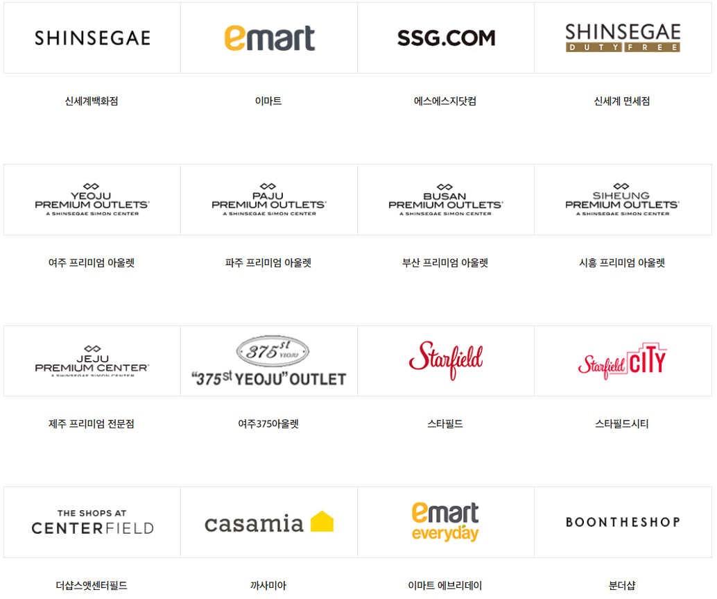 대표적으로 신세계 백화점과 이마트, 트레이더스가 있으며,