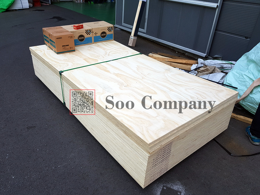 친환경합판은 국내산 친환경합판을 사용합니다. 준내수 합판이라고도 이야기하고, 친환경 합판이라고도 이야기를 합니다. E0본드를 사용하였기때문에, 본드냄세도 나지 않는 장점이 있습니다. 관급공사 혹은 1군건설사 공사를 진행할때 자재승인서를 요청하는 현장이 있는데, 국내산 합판의 경우 자재승인서류가 발급이 가능합니다.