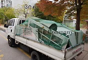 석고보드를 앞뒤로 상차한 후 각재를 옆으로 끼우고, 보온재를 올렸네요.