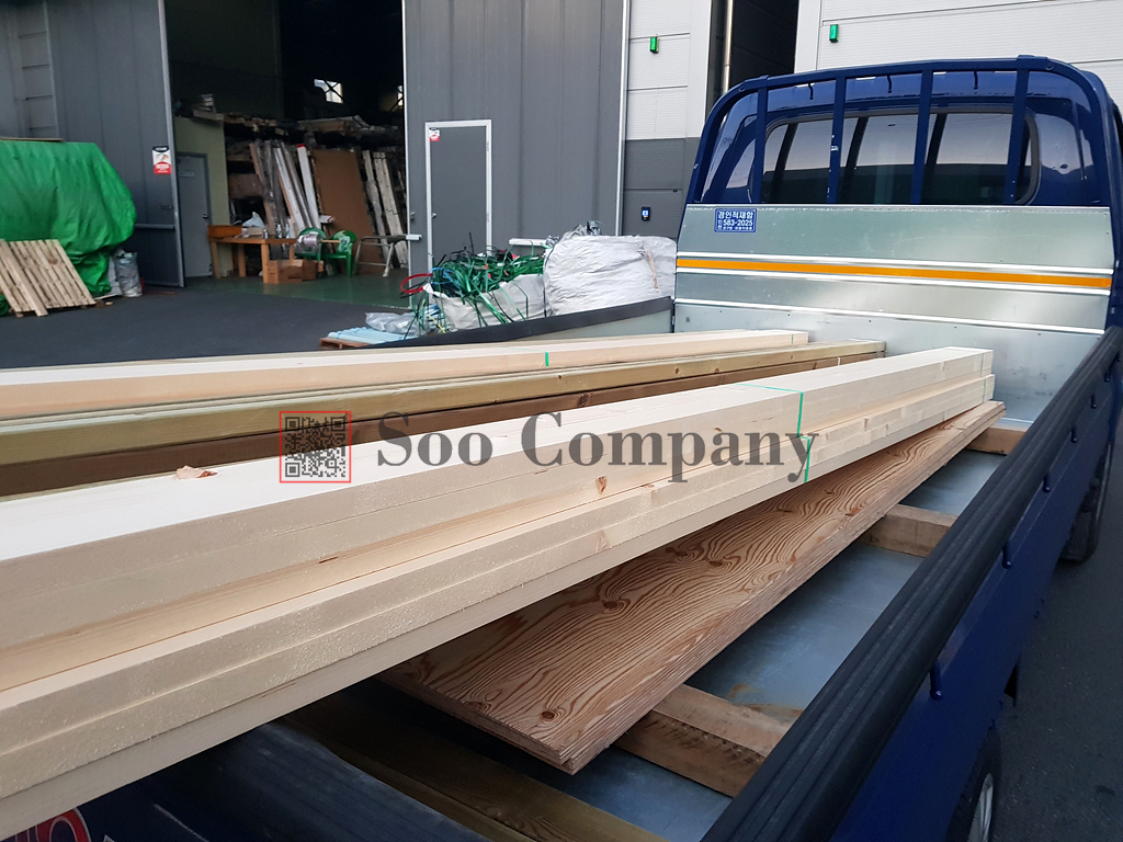 두번째로 낙엽송합판과 다루끼, 투바이, 낙엽송 합판이 출고가 되었습니다. 방부목을 시공하기위한 방부피스까지 재고로 두고 있답니다. 상가 인테리어 마감현장인데, 외부에 방부목 데크시공과 내부에 낙엽송합판을 이용해서 마감을 진다고 하시네요. 낙엽송합판의 경우에는 예전에 정말 인기가 많았던 제품인데, 요즘에는 많이 사용하지 않는 추세입니다. 그 이유는.... 다른것보다 무분별하게 낙엽송합판으로만 인테리어를 끝내는 현장들이 많아져서 인것 같습니다..ㅠㅠ