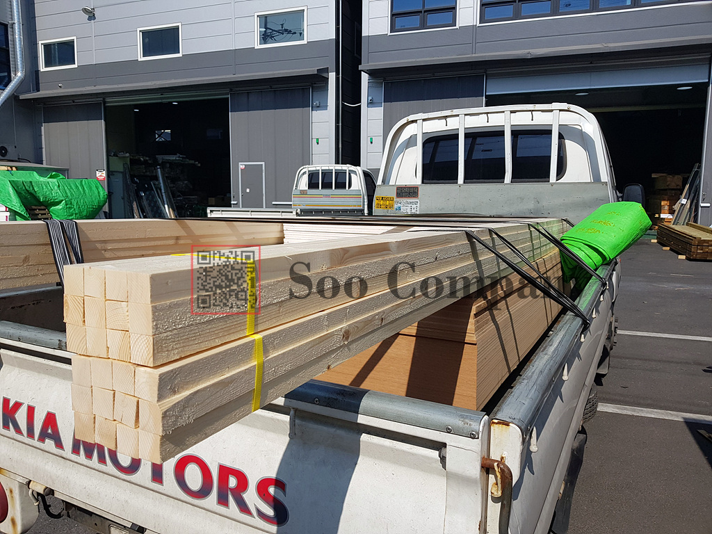자재가 상차완료되었습니다. 각재는 다 건조제품으로 출고가 되고 있습니다. 요즘 잠깐 투바이가 건조제품이 재고부족인 상황이 있었지만, 현재는 정상적으로 완전건조 제품으로만 출고를 하고 있습니다. 비건조나 자연건조 제품과는 다르게, 변형이 적고 가벼워서 사용하시기 좋은 제품이랍니다!