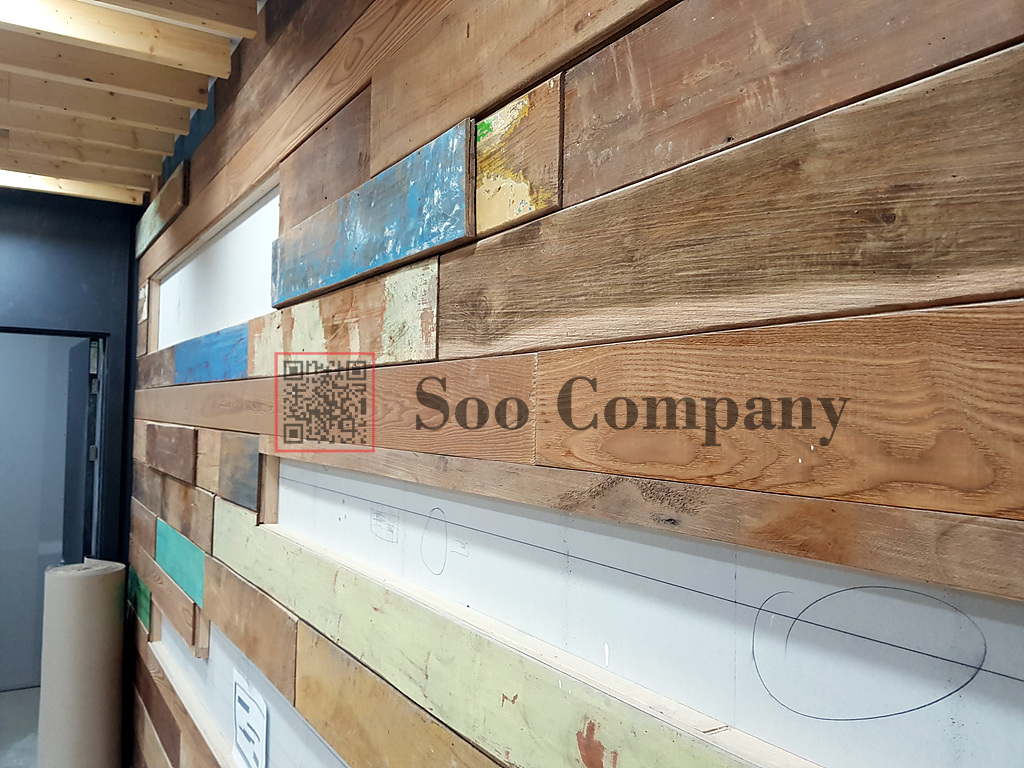 안녕하세요 이천목재상 수컴퍼니 입니다. 이번에는 티크고재와 애쉬 브러싱판재를 이용한 인테리어현장에 납품을 진행합니다. 이번 현장에서는 병원 데스크 뒷쪽에 인테리어를 한 현장인데요, 티크 고재와 애쉬브러싱 판재를 이용해서 디자인을 한 현장이랍니다., 애쉬 브러싱 판재의 경우에는 탄화되어있는제품이어서, 본연의 색상보다는 더 진한 색상으로 보이는게 특징입니다. 애쉬판재는 이번 현장을 끝으로 재고가 소진되었네요!