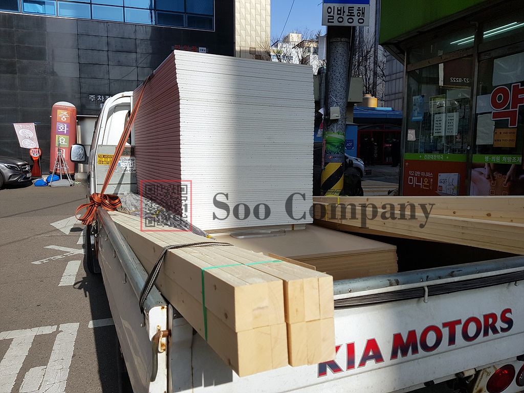 안녕하세요 인천목재상 수컴퍼니 입니다. 이번에는 구월동 현장으로 납품을 진행합니다. 이번 현장에서는 일반석고대신 방화석고를 주문해주셨네요! 아무래도 다중이용시설 공사라서 그런것 같습니다. 이번배송에도 운송기사님께서 사진을 보내주셔서 대단히 감사합니다!!