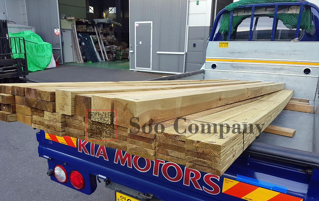 안녕하세요 인천목재상 수컴퍼니 입니다. 이번에는 방부목 출고가 진행되었습니다. 방부목은 미송원목을 건조/방부처리해서 만든 제품으로, 외장재로 여러가지 용도로 사용되고 있는 제품입니다. 요즘에 소나무류 가격이 너무 가파르게 상승했어서, 오랜만에 구매하셨던 분들이면 정말 방부목이 이가격이 맞은가 싶은 단가일것으로 예상됩니다.. 정말 저희도 눈물이 앞을 가린답니다..ㅠㅠ 한가지 팁을 드리자면, 스프러스 루바보다 히노끼루바가 지금은 더 쌉니다!! 그정도라면 가격이 대충 짐작가시리라 믿습니다.