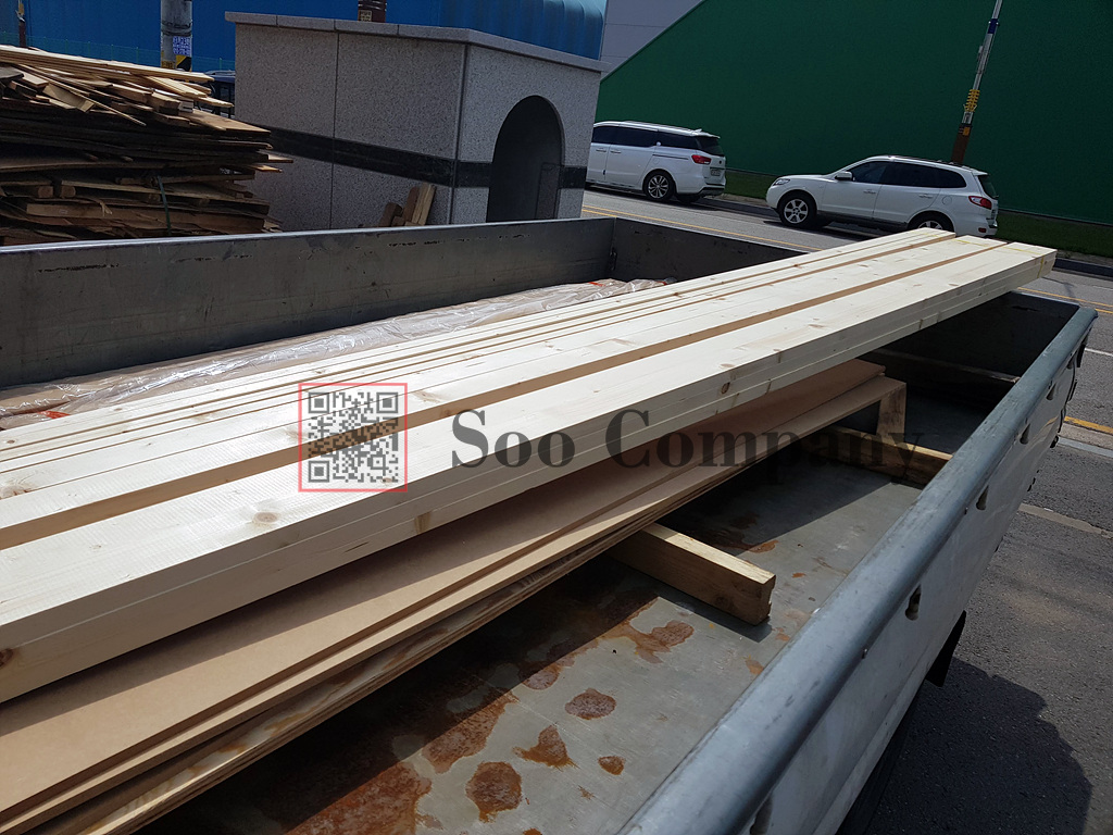 두번째 납품은 각재가 출고되었는데요. 소나무각재의 경우 보통 3.6미터로 나오기때문에, 각재가 몇단 모잘라서 발주하게 될경우, 운송비를 최소화 하기위해 경형트럭(라보)로 제품을 출고했답니다!! 1톤차량이랑 보통 5천원~1만원정도 비용차이가 나기때문에, 각재만 부족한경우거나, 자재량이 얼마 되지 않는경우엔 경형트럭으로 출고하는경우가 있답니다. 비가 오는날에 여러가지 제품이 있다면 비용이 더 들어가더라도 1톤차량으로 출고드리는것을 추천드리고 있습니다!! 목쟁기때문에, 비에는 취약해서 입니다...ㅠㅠ