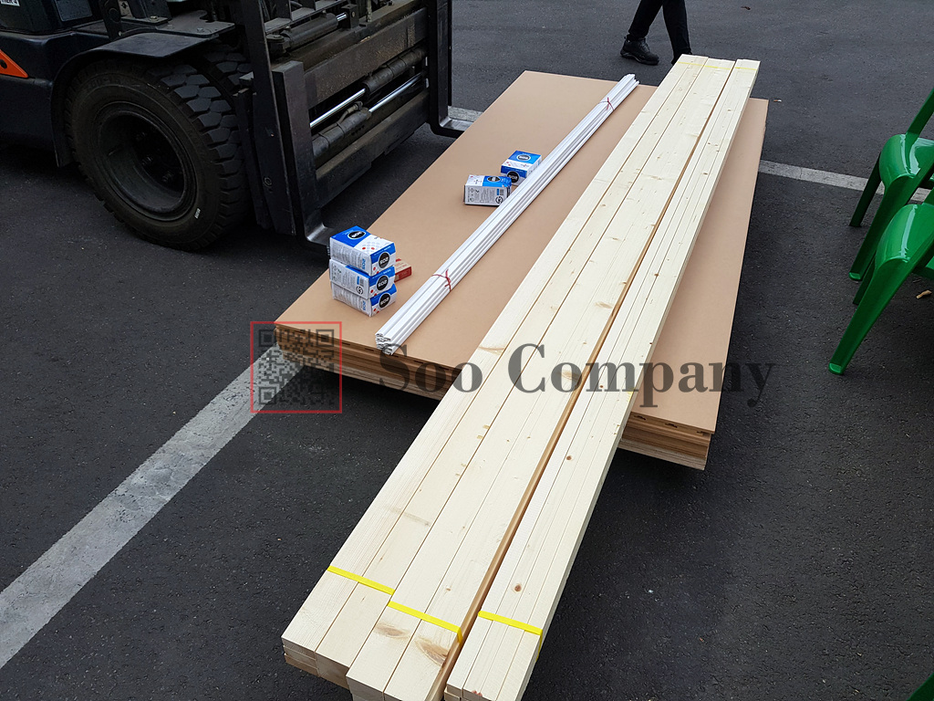 첫번째로 소송각재류 (다루끼, 투바이)와 mdf, 합판이 납품되었습니다. 스페이스월이 추가되어 인서트의 모습도 보이네요. 스페이스월은 보통 백색으로 재고를 가지고 있습니다. 예전에 블랙색상으로 스페이스월을 잠깐 받아둔적이 있는데, 정말 소진이 안되서 너무 어려웠네요..ㅠㅠ 동아제품으로 여러가지 컬러가 나온느것으로 알고 있지만, 저희 수컴퍼니에서는 기본적으로 백색으로 재고를 가지고 있는점, 미리 안내를 드립니다. 블랙컬러는 주변에서도 구하기가 어렵더라구요...ㅠㅠ
