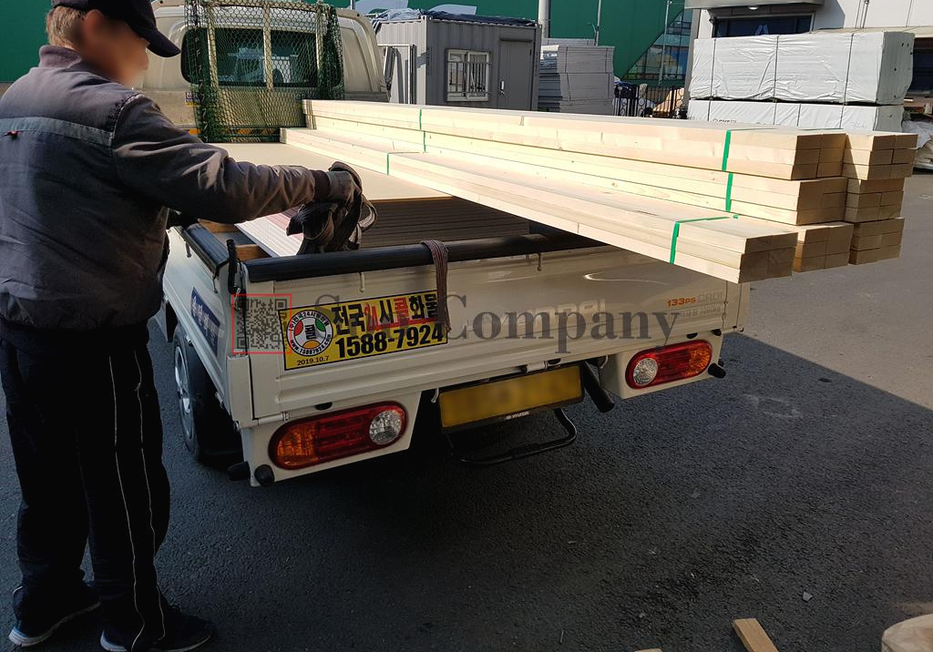 수컴퍼니에서는 용달차로 출고를 도와드리고 있으며, 직접 오셔서 수령도 가능합니다! 용달비용은 자재의 량에 따라, 거리에따라 차등척용되며, 일요일에 필요한 자재라면 토요일 오전까지 발주를 주신다면 출고 가능합니다. 참고해주시기 바랍니다!