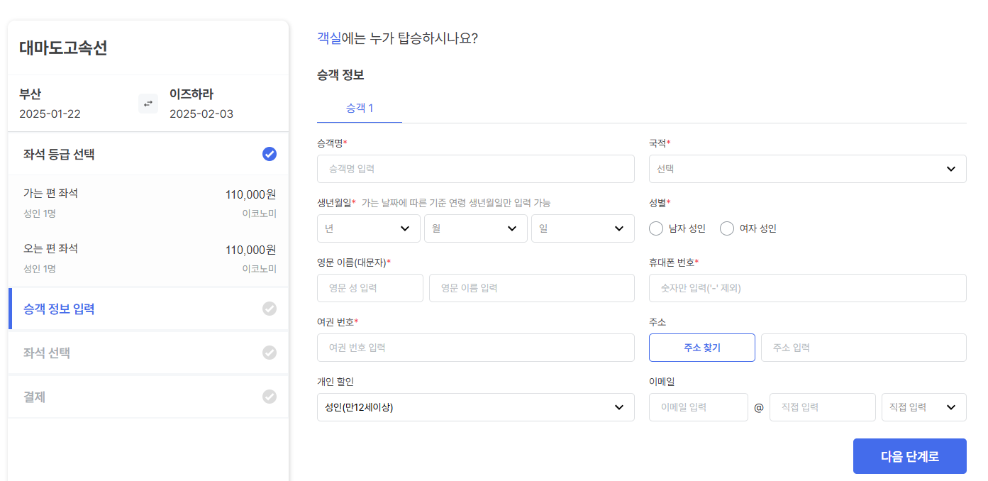 - 왕복/편도/다구간선택 : 여행일정에 맞게 클릭합니다.