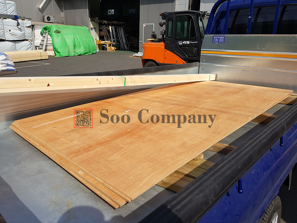 두번째 현장에는 9미리 합판과 각재가 출고가 되었습니다. 합판의 경우에는 정말 번들에 따라서 색상이 제각각이어서....ㅠㅠ 한결로 맞추어 드리는게 수월하지만 어렵답니다..ㅠ 그래도 보통 한 번들에서 나오는 제품들은 비슷한 무늬결의 제품들이 들어있어서 좋답니다!! 태생이 마감합판으로 나온 제품이 아니어서 그런지, 아무리 라왕합판이라도 무늬결이 다 다르답니다..ㅠㅠ