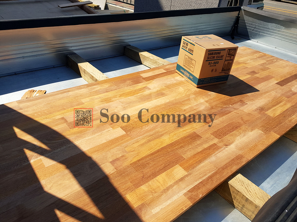 마지막으로 멀바우집성판과 실리콘을 출고합니다. 멀바우집성판중 광폭 집성된 제품인데요. 예전에는 광폭집성판이 재고가 많았는데, 여러가지 이유로 요즘에는 수입이 잘 안되고 있답니다...ㅠㅠ 제일 사랑하는 제품중에 하나인데 정말 아쉽답니다...ㅠㅠ 이전에 납품갔던 현장에 보수하는 현장이라고 하셔서.. 어떻게든 구해보았습니다..ㅠㅠ 탈탈털어서 온것이라, 이제는 만나기 어려운것이 아쉽네요...ㅠㅠ