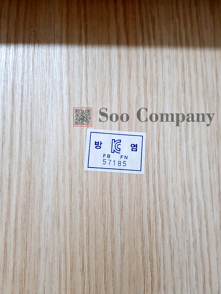 기존제품도 방염필름이 시공되어 있네요 ㅎㅎ 예림 84번 컬러의 경우에는 방염필름이 나오지 않는 컬러 입니다. (결국 예림도어는 아닌걸로..) 하지만 방염필름이 생산되지 않는 제품도 방염처리가 가능하답니다!!