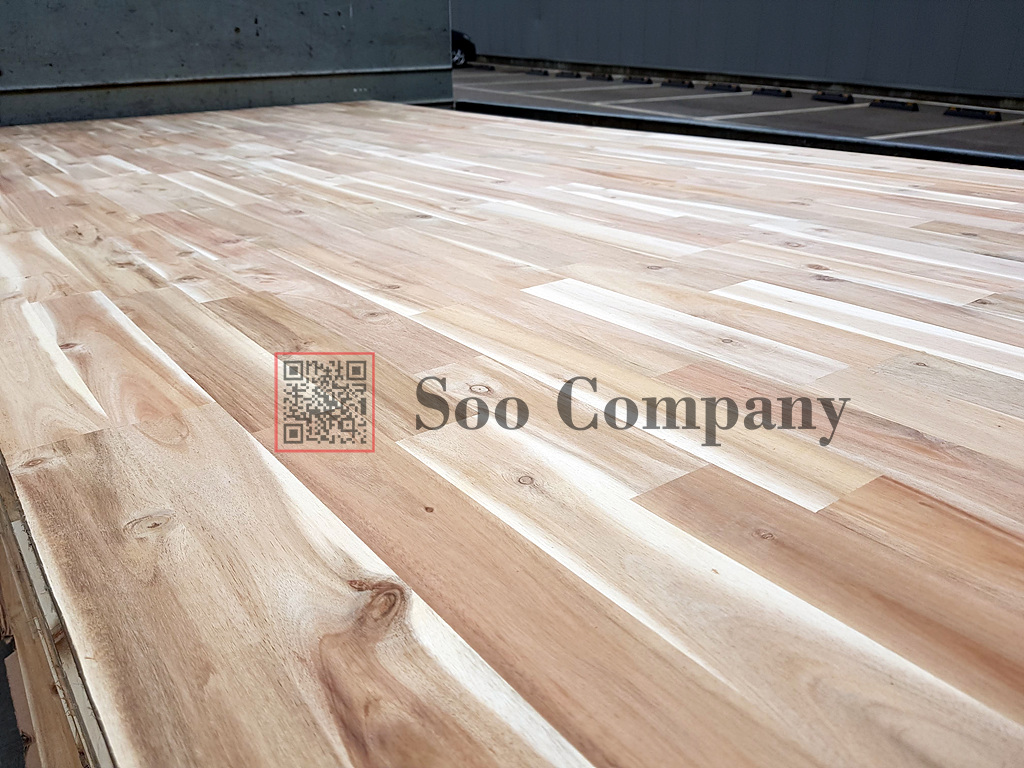 두번째로 납품된 자재는 아카시아 집성판 입니다. 24미리 두께의 아카시아 집성판이고, 유절제품입니다. 목재는 유절과 무절제품이 나뉘는데, 간단하게 목재에 옹이가 보인다면 유절, 보이지 않는다면 무절이라고 합니다. 가지가 뻗어나가는 부분이 잘려나가면 생기는 것인데요.