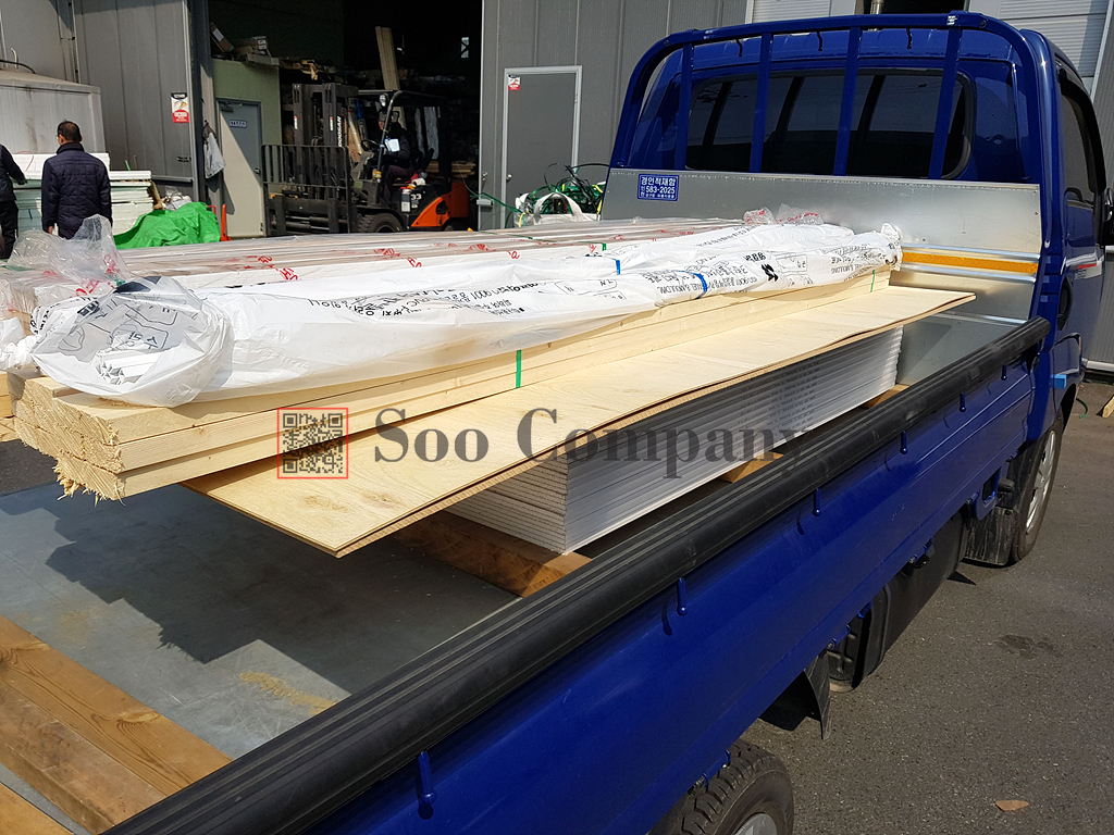 안녕하세요 인천목재상 수컴퍼니 입니다. 이번에는 오징어합판과 영림몰딩, 그리고 각재가 출고되었습니다. 이번 현장은 아파트 인테리어 현장인데요, 아파트 현장에서는 보통 엘리베이터로 양중을 하기때문에, 각재의 경우에는 2400으로 재단을 해서 출고하는 경우가 많습니다! 수컴퍼니에서는 각재재단은 바로 해서 출고가 가능합니다.