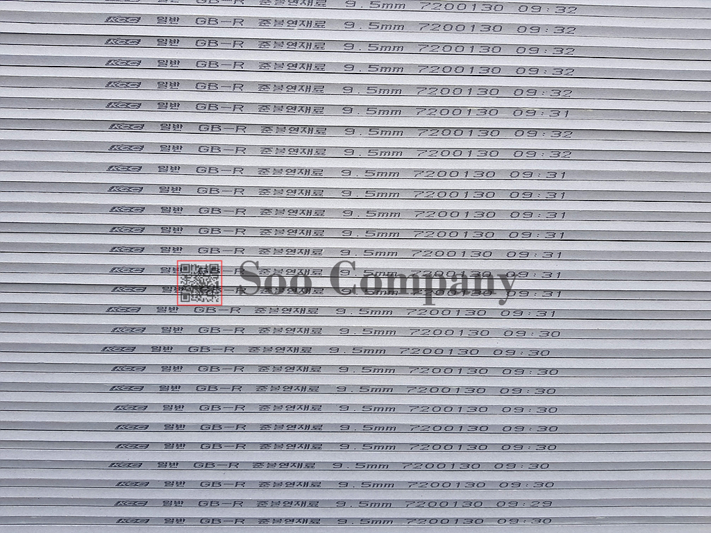 두번째 출고제품은 석고보드인데요, 석고보드에는 보랄(크나우프), kcc제품모두 옆에 경고문이 붙어 있는것을 확인할 수 있습니다. 참고해주시기 바랍니다!!