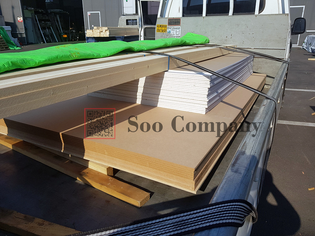 단단하게 바를 잘 묶어주셨네요. 여러두께의 mdf가 상차되었습니다. 30미리 제품이 있는것으로 보아, 카운터관련된 가구를 만드는것으로 보이네요 ㅎㅎ