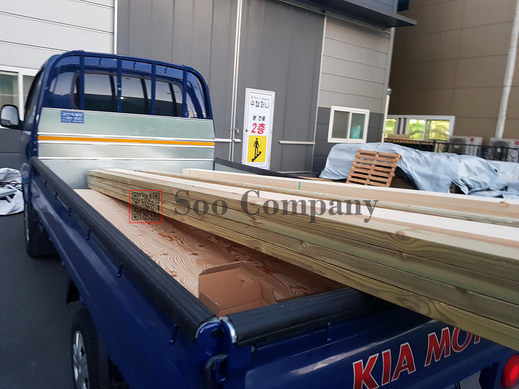 두번째로 낙엽송합판과 다루끼, 투바이, 낙엽송 합판이 출고가 되었습니다. 방부목을 시공하기위한 방부피스까지 재고로 두고 있답니다. 상가 인테리어 마감현장인데, 외부에 방부목 데크시공과 내부에 낙엽송합판을 이용해서 마감을 진다고 하시네요. 낙엽송합판의 경우에는 예전에 정말 인기가 많았던 제품인데, 요즘에는 많이 사용하지 않는 추세입니다. 그 이유는.... 다른것보다 무분별하게 낙엽송합판으로만 인테리어를 끝내는 현장들이 많아져서 인것 같습니다..ㅠㅠ