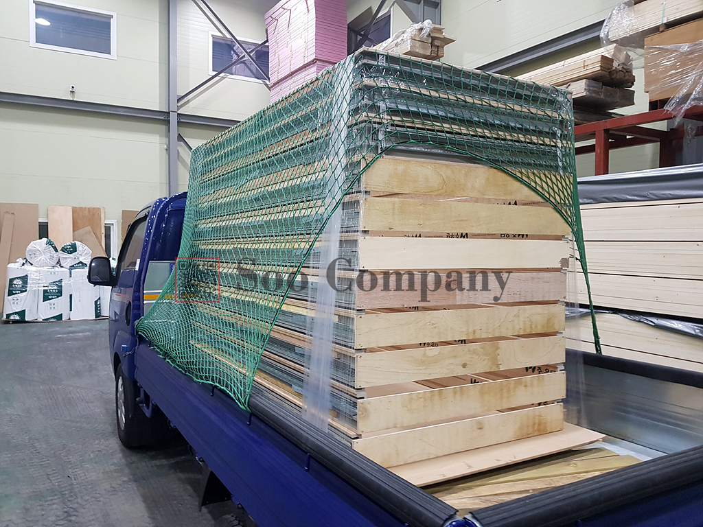 발포문틀이 용달차에 상차가 완료되었습니다. 아래에 합판이 있는 제품은 문지방이 없는 제품(식무, 식기무) 제품이고, 합판이 대져있지 않은 제품은 문지방이 있는 제품(식유, 식기유) 제품입니다. 문틀만 먼저 나가는 경우에는 문틀이 운행중에 무너질 수 있기때문에, 도어회사에서 포장해주는데로 지게차로 상차를 하거나, 도어를 포개서 상차를 합니다.