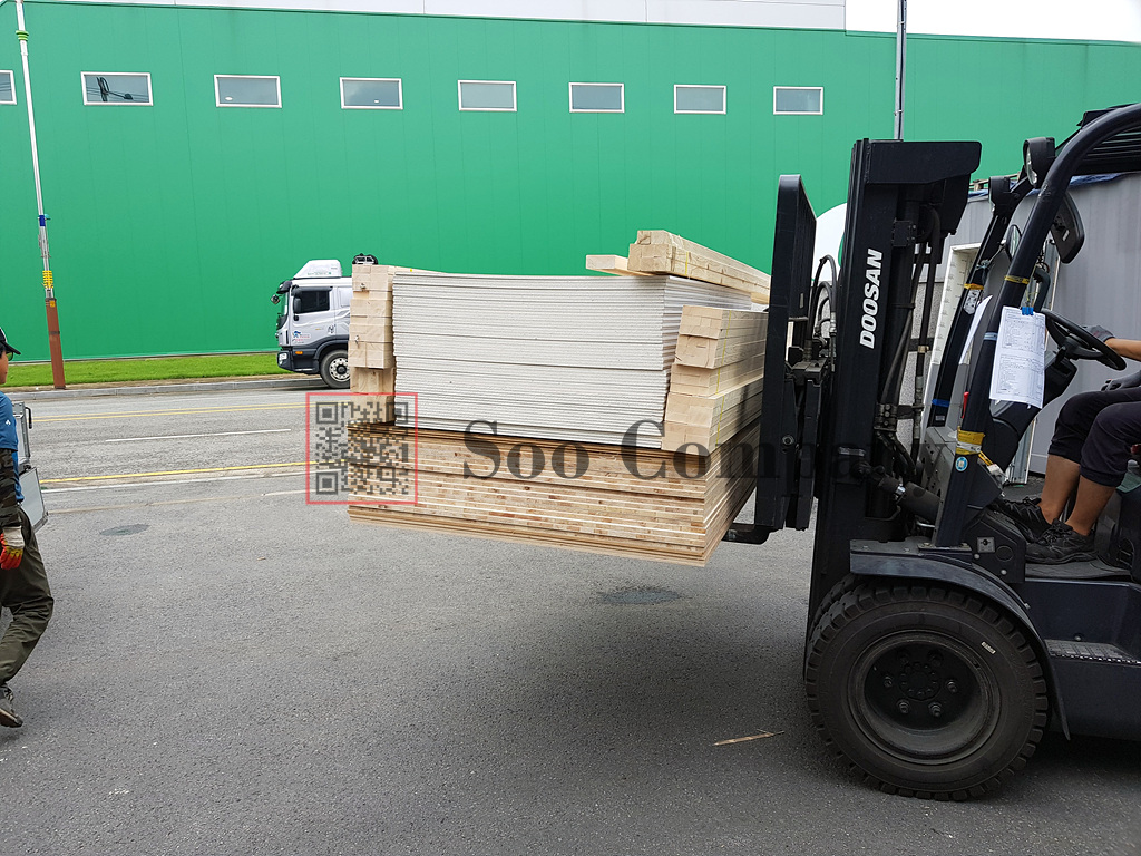 이번 출고짐은, 소송각재와 석고보드, 그리고 일반합판과 mdf, 그리고 코아합판이 출고되었습니다. 일반적으로 소송각재의 경우 수컴퍼니에서는 건조제품을 사용하고 있답니다. 비건조 제품의 경우에는 보관상에도 변형이 심하게 올 수 있기때문에, 건설현장에서 번들단위로 나갈때 출고를 하고 있답니다. 일반적으로 인테리어 현장에서는 사용하기도전에 변형이 오는 경우도 많고, 비건조 제품보다 무겁기때문에, 소규모 인테리어 현장에서는 많이 찾지 않는 제품이랍니다.