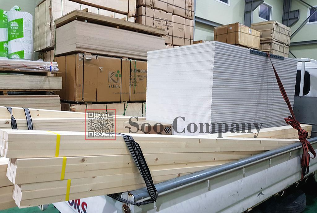 안녕하세요 인천목재상 수컴퍼니 입니다. 이번에는 인테리어 초도자재 납품이 진행되었습니다. 합판과 각재 그리고 석고보드와 철물이 출고되었네요.